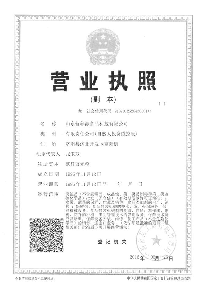 山東營(yíng)養(yǎng)源食品科技有限公司成立于1996年,注冊(cè)資金3000萬(wàn)元,已建工廠(chǎng)位于濟(jì)南市濟(jì)北開(kāi)發(fā)區(qū)澄波湖畔(濟(jì)陽(yáng)縣城)富陽(yáng)路。是專(zhuān)業(yè)從事果蔬保鮮技術(shù)、保鮮劑、保鮮材料研發(fā)與生產(chǎn),AF(農(nóng)業(yè)與食品)機(jī)電裝備設(shè)計(jì)與制造以及現(xiàn)代商品交易平臺(tái)建設(shè)與運(yùn)營(yíng)的高新技術(shù)企業(yè)。目前,公司正處于快速發(fā)展階段。公司先后獲得山東省